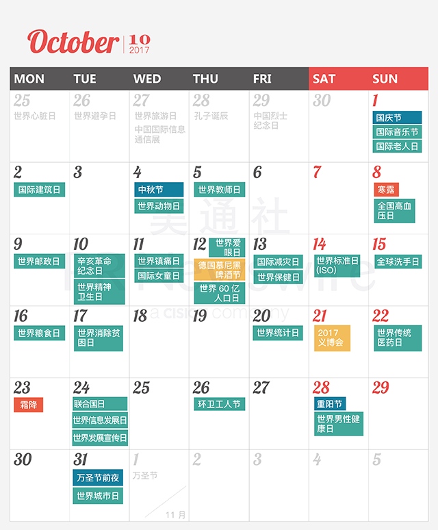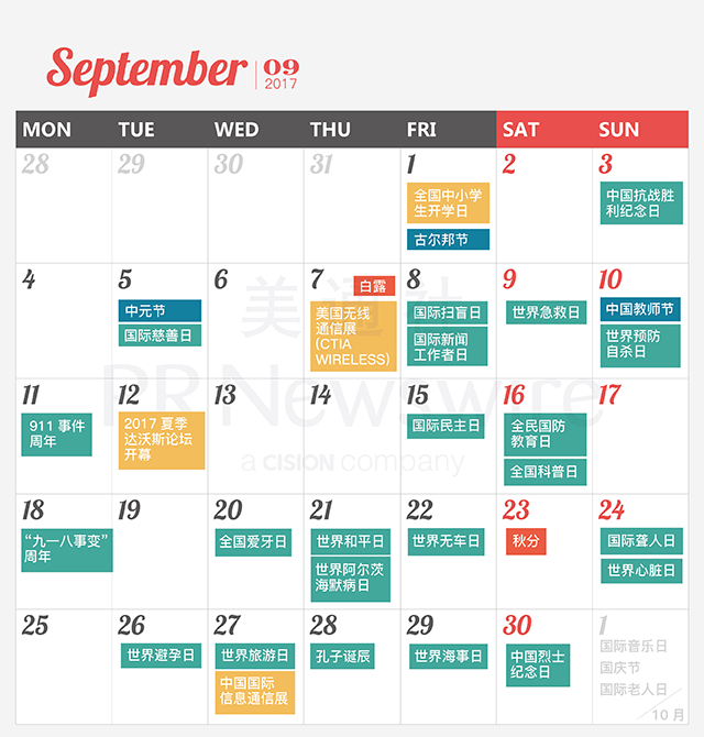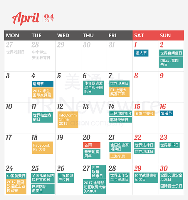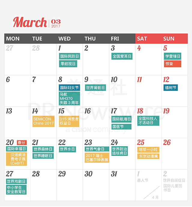 *美通社自2014年起開始推出新聞公關月歷,本月歷所有知識產權,包括創意、文字、圖片設計、印刷、原創插畫等版權歸美通社(PR Newswire)所有,轉載請聯絡美通社,標明原創出處。