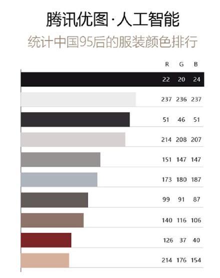 日前,QQ空間、騰訊優圖攜手唯品會亮相紐約時裝周,舉辦業界首個“AI+時尚”大秀,并發布《AI+時尚:中國 95后流行色報告》。騰訊優圖借助AI人臉識別與圖像處理技術,分析2016年QQ空間相冊千億公開照片,結合唯品會95后服裝銷售大數據,發現“95 度黑”( RGB值:22/20/24)是中國 95后年輕人最喜歡的顏色。報告還發現95后最常選擇與黑色搭配的顏色是“紅、黃、藍”;最愛買的服裝材質分別是棉、羊毛和皮革;最愛買的花色分別是印花、涂鴉和字母。(美通社,2017年2月15日紐約)