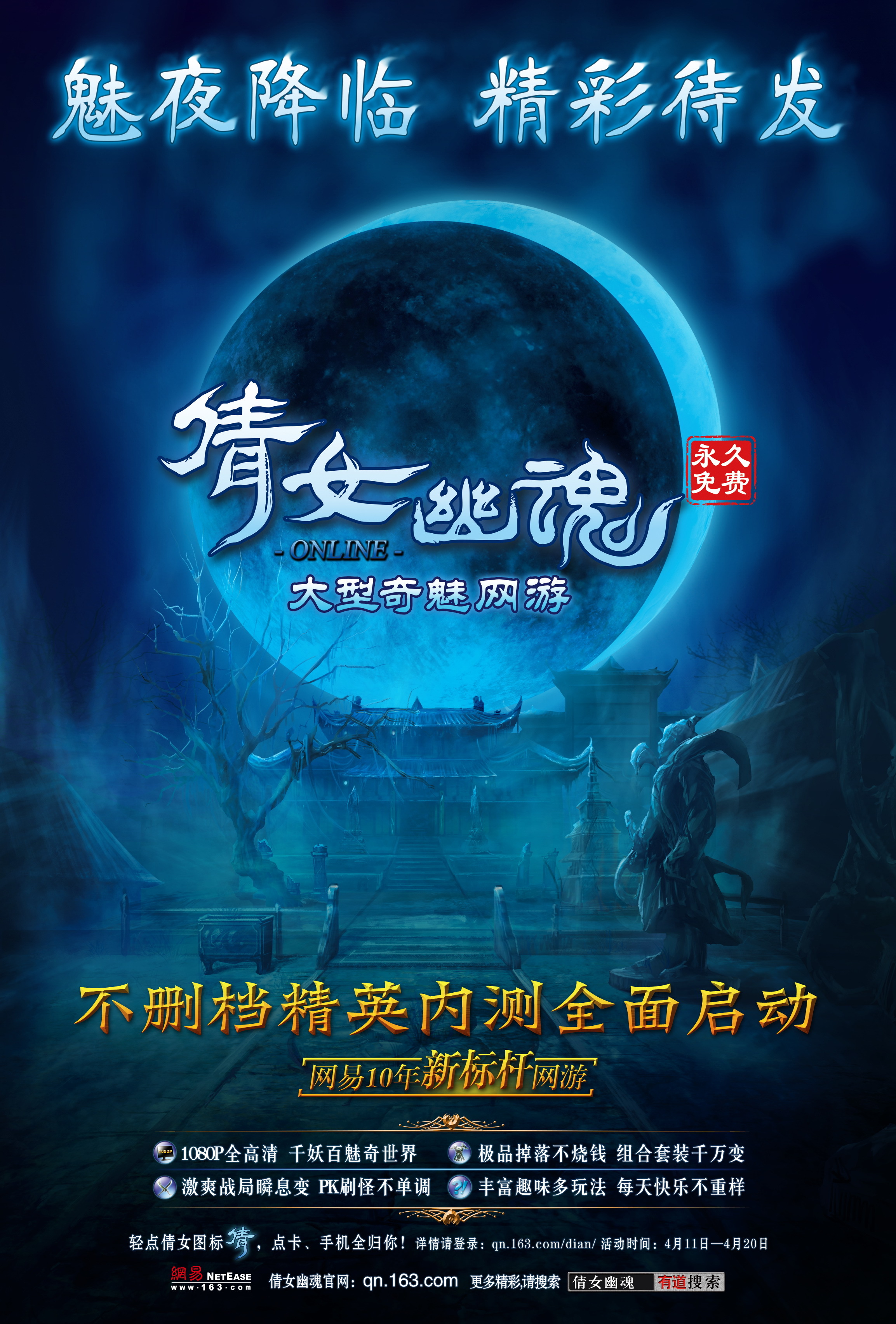 三方口碑,四大革新,六項(xiàng)大獎(jiǎng),作為網(wǎng)易十年新標(biāo)桿網(wǎng)游,《倩女幽魂》的推出標(biāo)志著網(wǎng)易全面進(jìn)軍2.5D 即時(shí)制游戲細(xì)分市場(chǎng),魅夜降至,是否早已迫不及待、躍躍欲試?共同期待4月22日不刪檔精英內(nèi)測(cè)的到來(lái)。