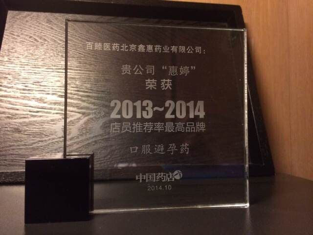 經(jīng)過權(quán)威的問卷調(diào)查,透明的公開評選及嚴格的逐級審核,本次峰會隆重揭曉了“店員推薦率最高品牌”、“中國連鎖藥店百強”、“年度人物百強”、“醫(yī)藥電商十強”、“十大金牌店長/店員”等獎項。惠婷®系列產(chǎn)品——榮獲口服避孕藥類“年度店員推薦率最高品牌”。這一殊榮既是市場對百睦鑫惠公司實力的絕對認可,也是消費者對我們藥品品質(zhì)的最佳肯定。惠婷®將一如既往為終端藥店及廣大用戶提供一流的產(chǎn)品和服務(wù),全力打造“生殖健康技術(shù)專家”及“計生行業(yè)領(lǐng)導(dǎo)者”的公司形象。