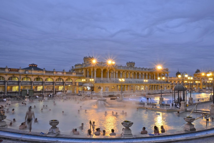 在布達(dá)佩斯,自19世紀(jì)以來(lái)溫泉旅游就極具吸引力,而新藝術(shù)運(yùn)動(dòng)等設(shè)計(jì)風(fēng)格的應(yīng)用創(chuàng)了更多的豪華地標(biāo)建筑。多數(shù)水療中心都設(shè)有戶外設(shè)施,夏季的露天泳池為建筑群增添了假日氣氛。