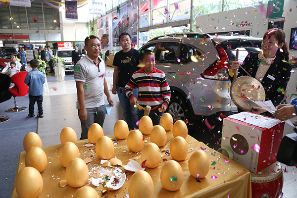 在此次活動中,實(shí)田4S店為所有成功購車的顧客準(zhǔn)備了砸金蛋活動,只要是報(bào)名參與本次活動并成功購車的的網(wǎng)友均能從活動中收獲各種精美的禮品,到場顧客參與程度異常火爆。