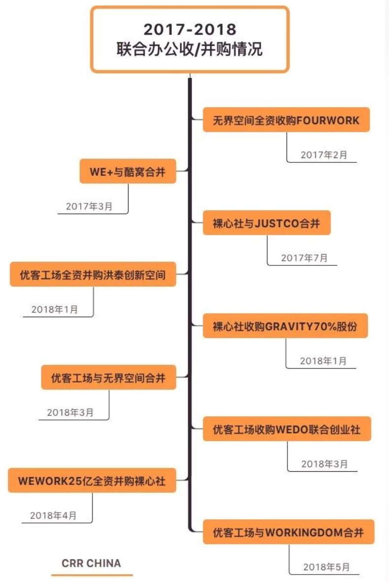 截止到今年3月,優(yōu)客工場在全球44座城市及新區(qū)布局了200余個(gè)共享辦公空間,包括國內(nèi)眾多一二線城市,以及新加坡、雅加達(dá)、紐約等國外知名地區(qū)。收并購方面,僅僅2018年,優(yōu)客工場就完成了對無界空間、愛特眾創(chuàng)、松禾孵化器、碎片空間、方糖小鎮(zhèn)、Wedo聯(lián)合創(chuàng)業(yè)社、火箭辦公、Workingdom的收購。