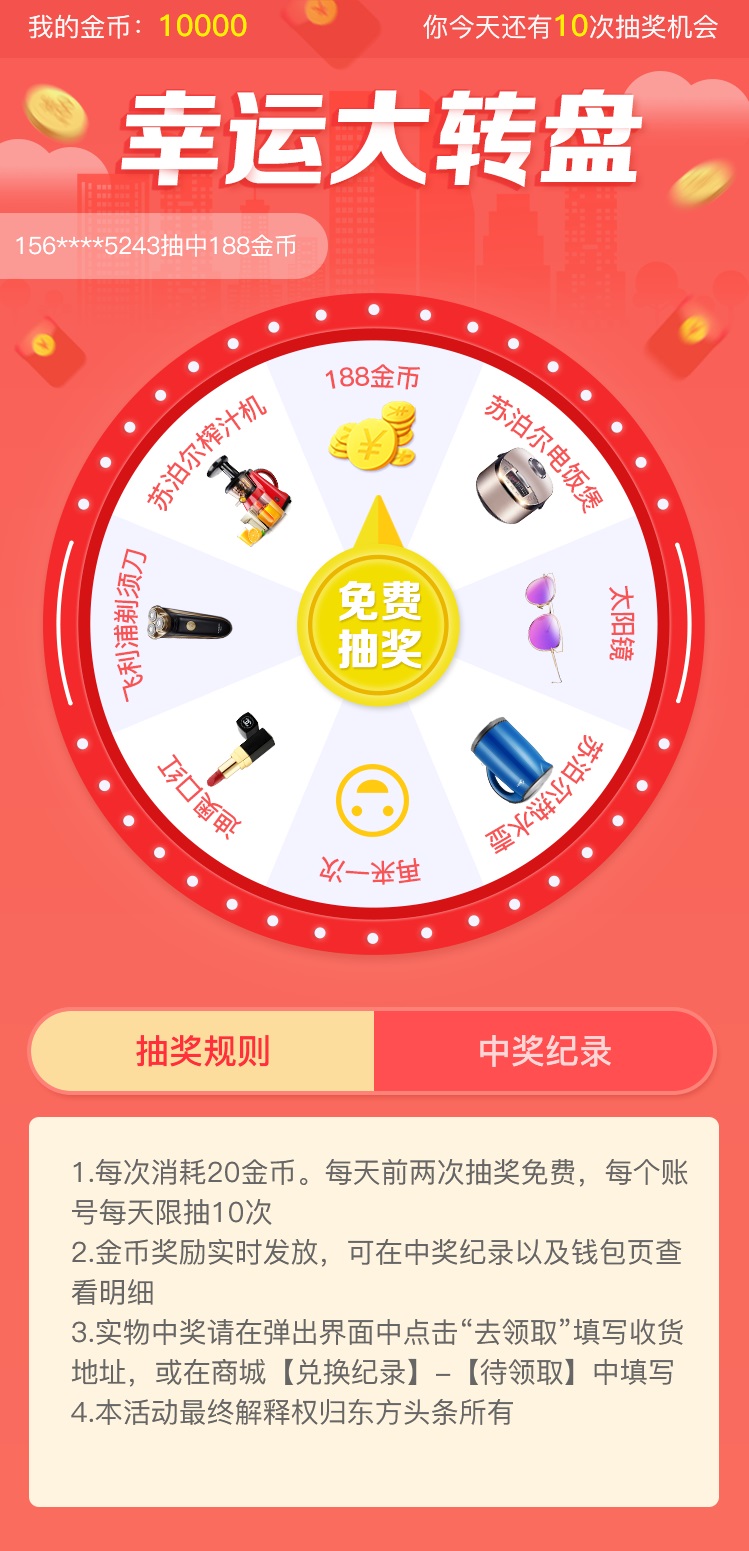 用戶在東方頭條平臺(tái),通過(guò)閱讀、評(píng)論、分享內(nèi)容或邀請(qǐng)好友獲取的金幣,均可參與“幸運(yùn)大轉(zhuǎn)盤(pán)”抽獎(jiǎng)活動(dòng),每消耗20枚金幣可兌換一次抽獎(jiǎng)機(jī)會(huì),月餅禮盒、陽(yáng)澄湖大閘蟹及干紅葡萄酒等好禮繽紛上場(chǎng)。