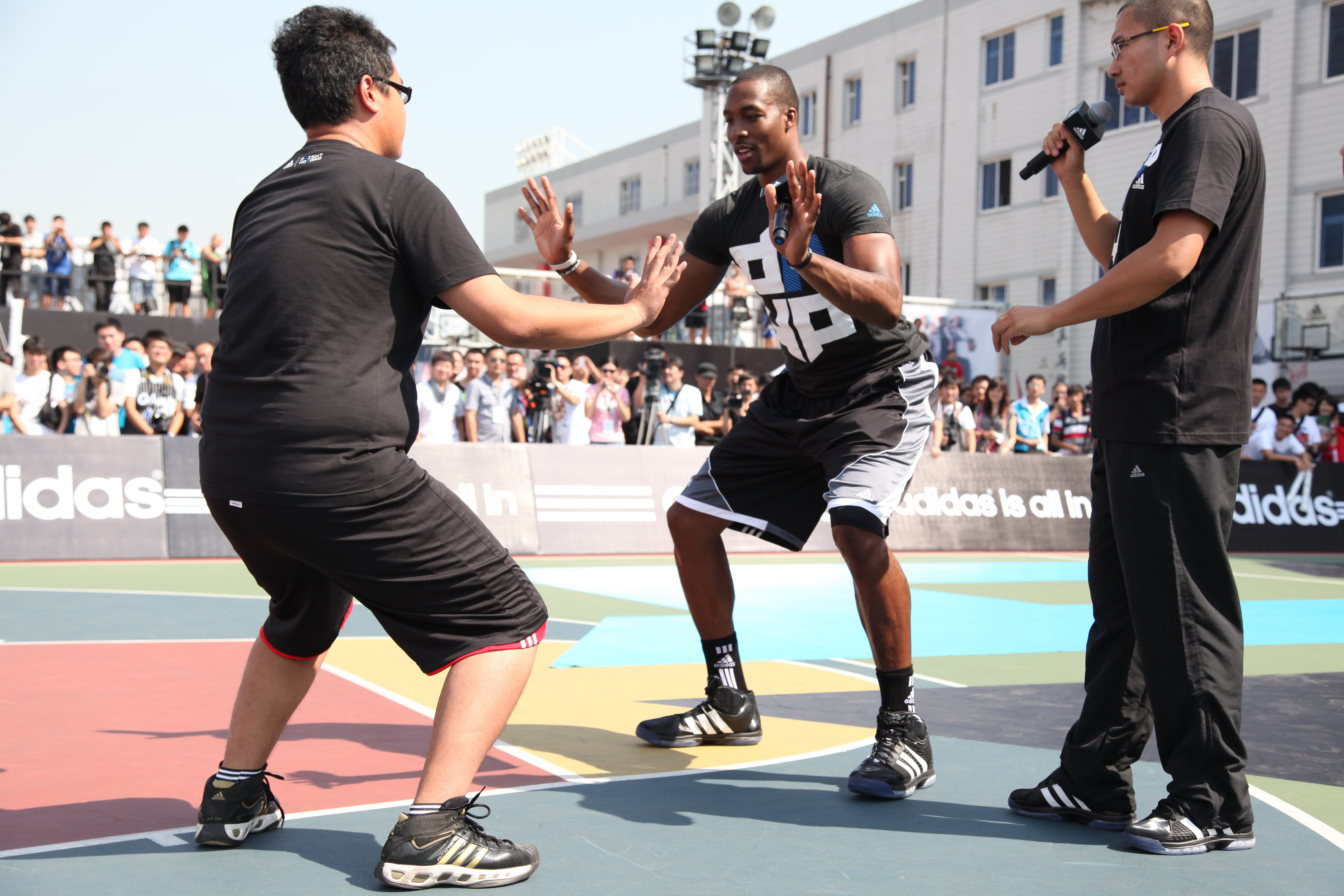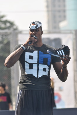隨后,霍華德開始向球迷分享他的籃球故事,傳遞其如何全傾全力變壯變強的訓練之道。這位三屆NBA年度防守球員,也向球迷介紹他對于此次“霍華德3D中國行”中“3D”一詞的理解,代表著他曾三次獲得年度防守球員 (DEFENSE PLAYER OF YEAR)。與此同時,他還向球迷們介紹自己全新專屬戰靴——adipower Howard。