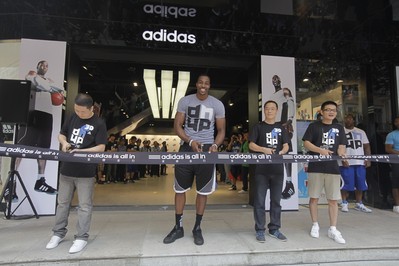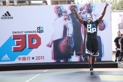 北京2011年9月2日電 /美通社亞洲/ -- 今日,世界領先的運動品牌阿迪達斯旗下的籃球巨星——三屆NBA 年度防守球員德懷特·霍華德震撼降臨北京地壇籃球公園,開始為期一周的“霍華德3D中國行”活動。時隔一年,再度造訪北京的魔獸霍華德,難掩心中的喜悅與興奮。在向球迷們展示其夏日訓練成果的同時,仍不失其幽默的個性,頻繁上演搞笑的說唱戲碼與逗趣的中國話問候。拋開了魔獸搞笑的特性,在訓練場與球迷互動中,霍華德不但為京城球迷帶來了一堂如何變強的訓練課程,同時在球場上與球迷進行互動PK,讓在場的球迷領略了其全傾全力的強無雙精神——忘我的投入訓練,突破自我,超越自我。與此同時,霍華德發布并介紹了個人專屬Logo及中國行戰靴adipower Howard,此款黑白配色中國行限量款在全國僅限量發售500雙,正式鞋款將在今年十一月發售。