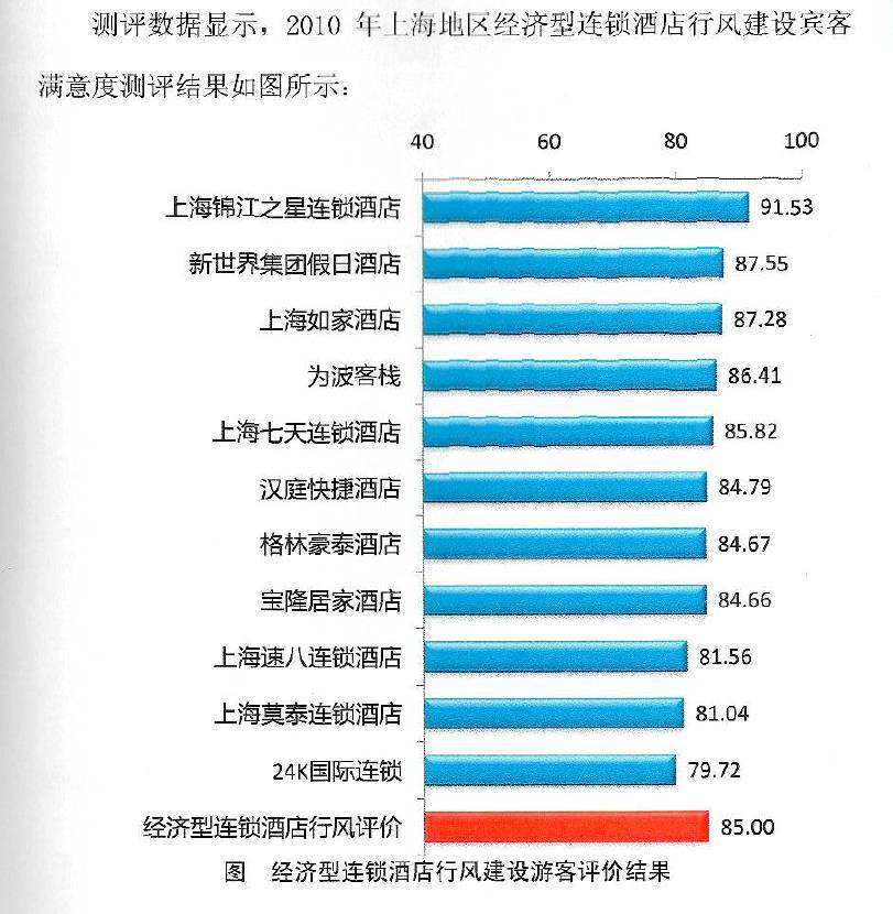 上海2011年2月25日電 /美通社亞洲/ -- 2011年1月13日,由上海市旅游局委托上海市質協用戶評價中心,做出的2010年度上海地區經濟型連鎖酒店行風建設賓客滿意度測評結果揭曉。在11個經濟型酒店品牌中,錦江之星賓客總體滿意度為91.53分,位居各品牌之首。