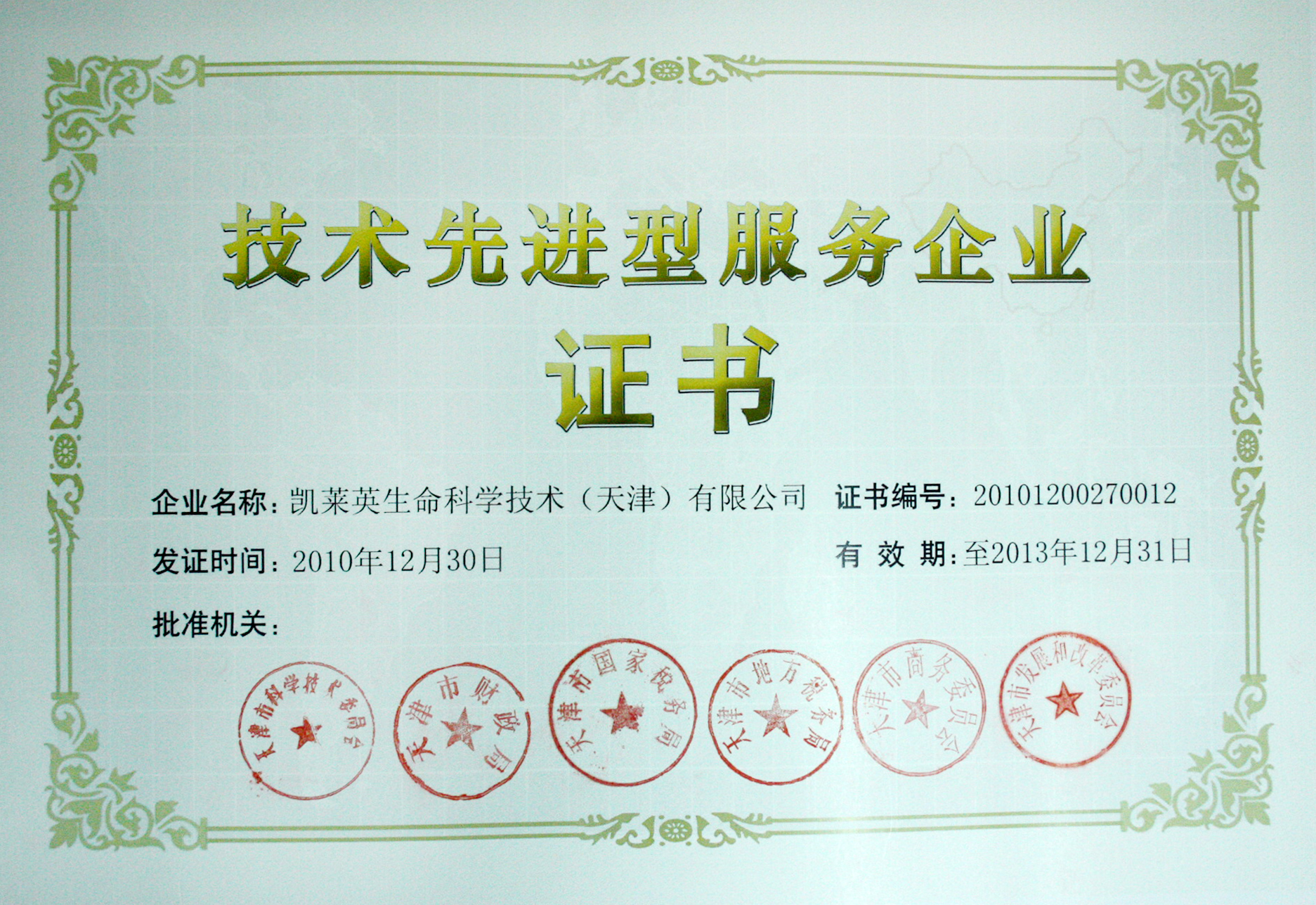 天津2011年2月28日電 /美通社亞洲/ -- 近日,天津市科委公布了2010年技術先進型服務企業名單,凱萊英生命科學技術(天津)有限公司以其先進的自主創新技術和強大的研發生產能力被認定為天津市技術先進型服務企業并可以享受一定的稅收優惠政策。凱萊英公司的服務能力、技術水平以及所取得的業績再次得到了天津市政府的充分認可。
