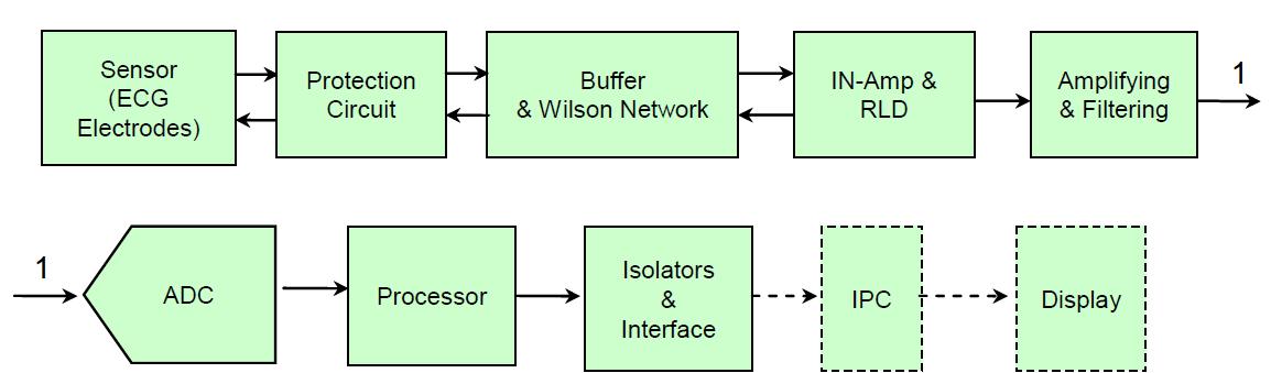 圖1是 ECG 設(shè)計的一個單導聯(lián) ECG 系統(tǒng)簡化系統(tǒng)功能框圖。如果采用分立器件實現(xiàn) ECG 設(shè)計,在模擬前端部分,每個導聯(lián)都需要實現(xiàn)圖中保護電路、緩沖、放大及濾波、ADC 等功能電路模塊。工程師獨立完成該系統(tǒng)設(shè)計將是一個極具挑戰(zhàn)性的工作:首先,分立器件的選擇需要參考眾多的性能指標,包括濾采樣速率、帶寬、噪聲,等等;為使 ECG 測量輸出信息可用,必須保證通道之間的一致性;前端信號調(diào)理電路與 ADC 之間的匹配;眾多的調(diào)試點,調(diào)試工作量巨大……事實上,除了圖中所示的基本功能模塊外,用戶的設(shè)計工作可能還包括:構(gòu)建 RFI 濾波器以減少諸如手機、廣播等的無線干擾;選擇合適的阻容器件設(shè)定恰當?shù)臑V波頻率;對敏感器件增加靜電屏蔽罩以避免 ESD 干擾,使產(chǎn)品滿足 IEC 相關(guān)標準要求。