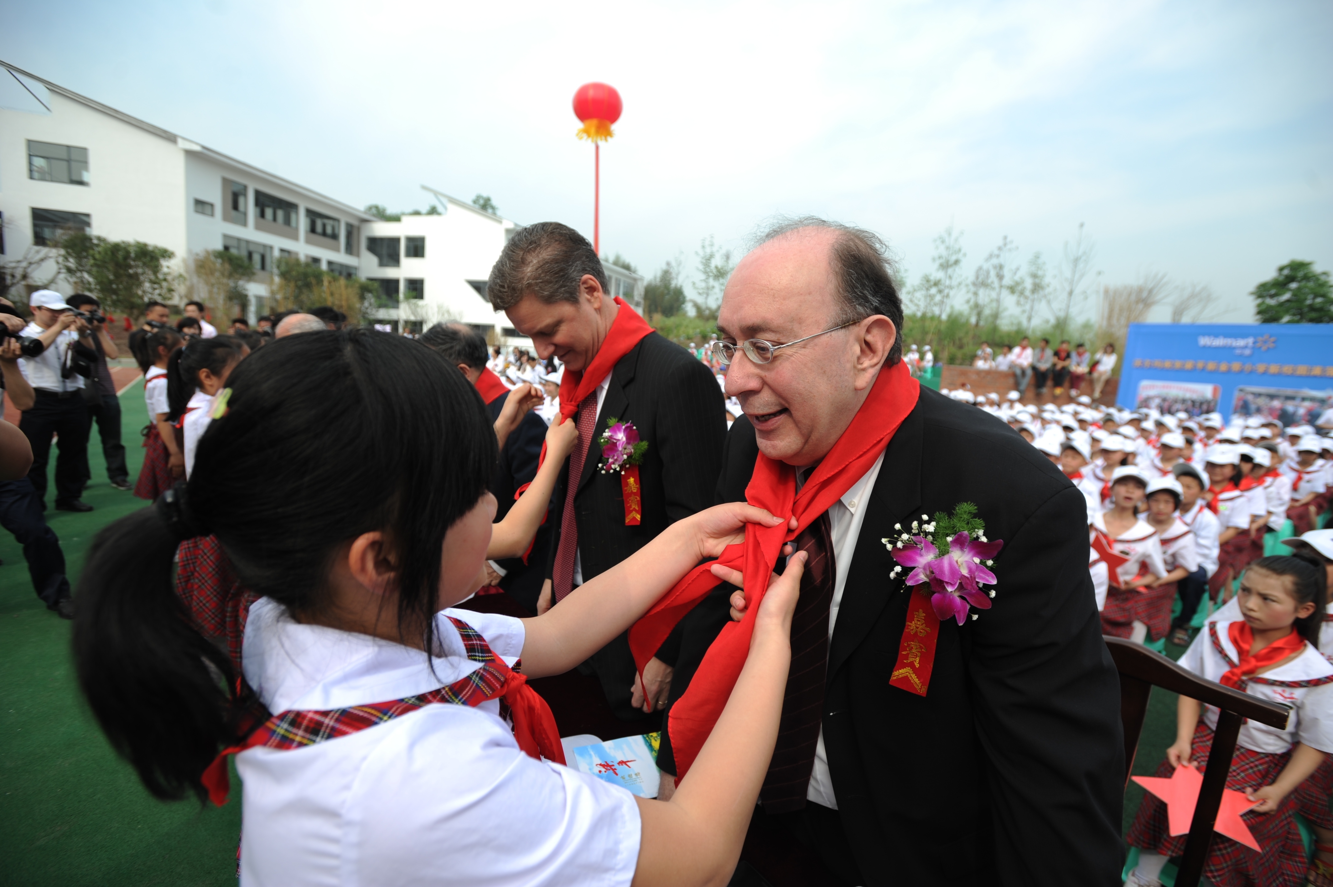 中美可持續發展中心美方理事會主席 Gary Dirks、中國21世紀議程管理中心主任郭日生、中國宋慶齡基金會基金部副部長李曉峰、中華環?;饡貢L李偉、沃爾瑪中國公司事務副總裁傅希孟(Barry Friedman)、沃爾瑪全球采購副總裁藍柯(Ken Lanshe)、沃爾瑪公司國際部可持續發展高級總監柯培新(Beth Keck)等嘉賓及數十名來自沃爾瑪重慶各商場的員工代表出席了新校園落成儀式。沃爾瑪還向新金帶小學捐贈了師生急需的電腦等價值萬元的學習及體育用品。