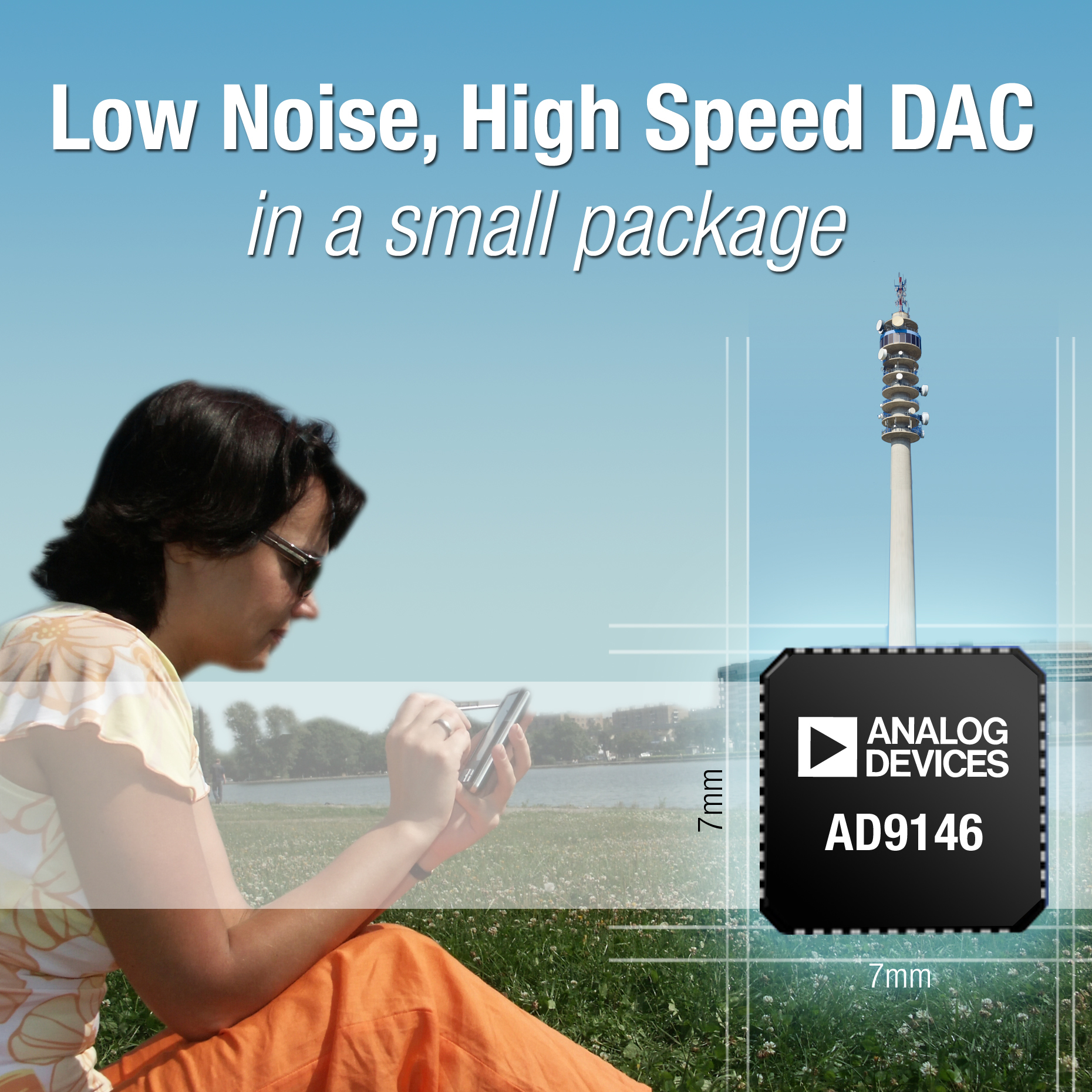 ADI 公司的 AD9146 TxDAC® 數模轉換器具有低噪聲特性和業界較快的1.2 GBPS 數據速率,并采用7mm x 7mm LFCSP 封裝。