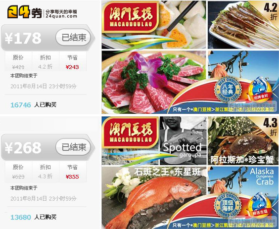 24券對于再次與“澳門豆撈”的合作也非常重視,對于本次與“澳門豆撈”的合作也深感滿意。因為就在上個月,澳門豆撈同款包含阿拉斯加珍寶蟹、石斑之王東星斑等頂級食材的“海鮮盛宴”,已經創下了本土團購史上首次千萬級銷售紀錄,而24券本次超過30000單的成績,也彰顯了24券強大的營銷平臺和龐大的優質客群資源。“引入澳門豆撈這種重量級的合作伙伴,為會員提供‘大品牌,大幸福’的消費體驗,也是24券核心競爭力所在。”