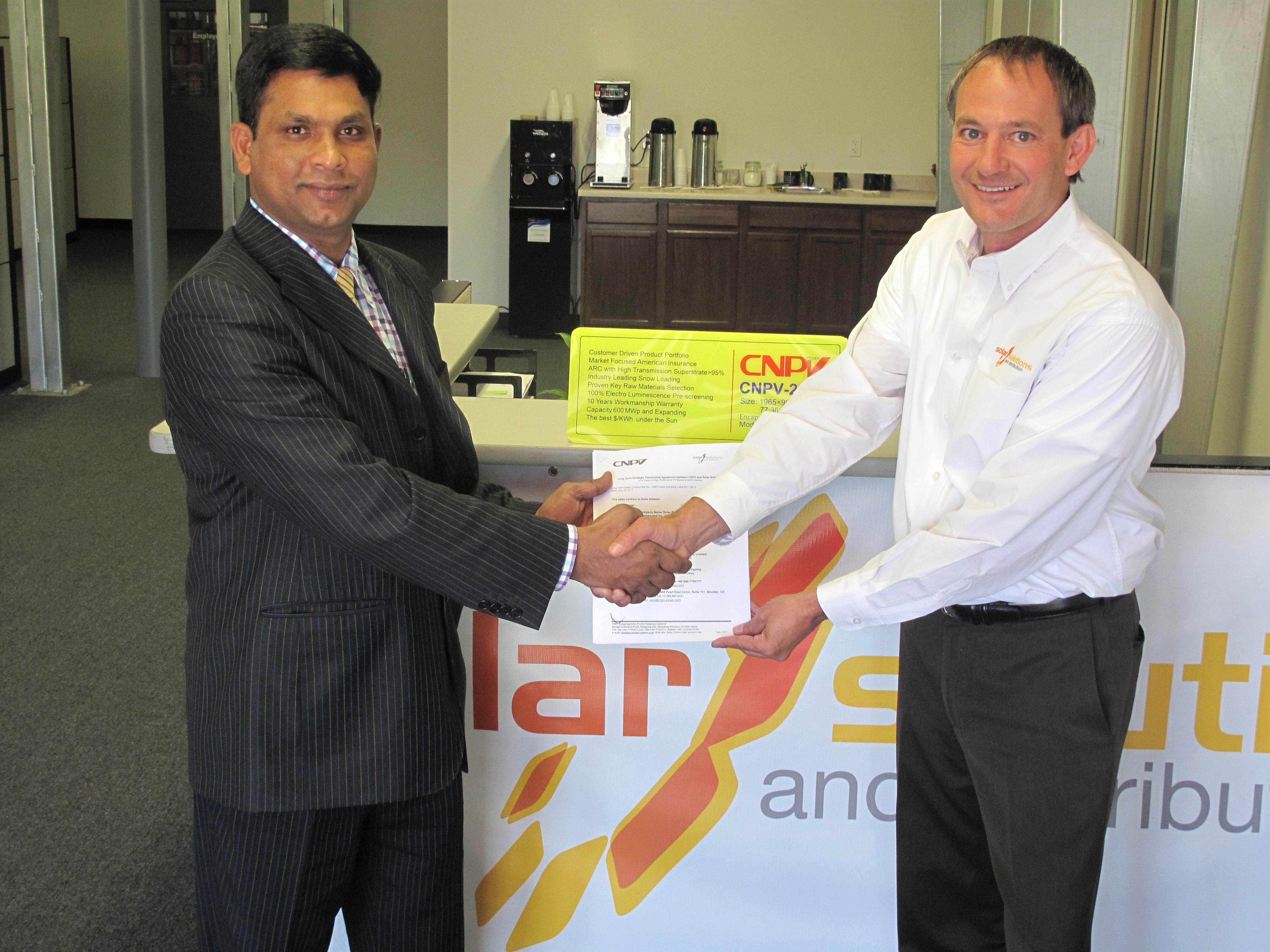 根據該戰略協議,CNPV 將在2011至2013年期間共為 Solar Solutions 提供100MWp 的高性能光伏組件,其中包括計劃于2011年交付的10MWp 的組件。剩余的40MWp 和50MWp 組件計劃將分別于2012年和2013年交付。協議條款內包括一份明確的積極拓展計劃,它將使最初設定的銷量大大增加。憑借其特殊設計的經營結構,Solar Solutions 可立即回答通訊信息并可在全美各地24小時之內交貨。Solar Solutions 及其區域合作代理商均認為,他們能夠通過現有的客戶群進一步迅速地擴大市場。