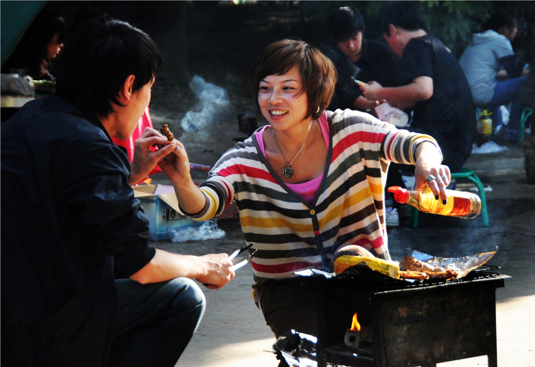 特等獎(jiǎng)獲得者楊建正介紹,作品《甜蜜一刻》攝于“十一”長(zhǎng)假時(shí)的上海郊野的公園燒烤場(chǎng)。鏡頭中女主角拿著一塊剛烤好的牛肉,遞給男友品嘗。暖烘烘的燒烤爐,美味的調(diào)味品料,女主角那關(guān)愛的表情,構(gòu)成了一幅集味道與幸福的佳作。