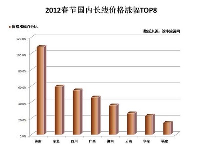 每年春節(jié)期間,多數(shù)旅游熱門方向都會有較大幅度的價(jià)格上漲,今年“春游”也不例外,多數(shù)熱門方向環(huán)比漲幅都在30%以上,部分方向漲幅甚至高達(dá)80%或出現(xiàn)翻番。“價(jià)格上漲對市民的出游熱情影響不大,如今年上海出發(fā)至澳洲新西蘭方向的高端線路漲幅達(dá)到了71.4%,上海出發(fā)至日本方向的高端線路上漲近58%,但出游人數(shù)卻不降反增。”途牛旅游網(wǎng)度假產(chǎn)品部總監(jiān)魏斌對市民出境游熱情表示看好。