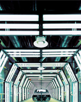 飛利浦照明與寶馬華晨的合作迄今已有十年。在2011年完成的寶馬華晨二期項目中,設計團隊結(jié)合流水線的工藝環(huán)境,為沖壓、焊接、油漆、總裝等四大生產(chǎn)環(huán)節(jié)設計了全線使用 DALI 控制的照明解決方案。實際工作中,操作者可以通過系統(tǒng)終端,對全廠數(shù)萬套 TTX188 與 T5 產(chǎn)品組合進行編程、監(jiān)測、控制,以求較大限度地適合柔性生產(chǎn)流水線的照明要求,同時較大限度地節(jié)能和利用了電力,滿足了寶馬無論是對生產(chǎn)線還是產(chǎn)品都精益求精的專注要求。