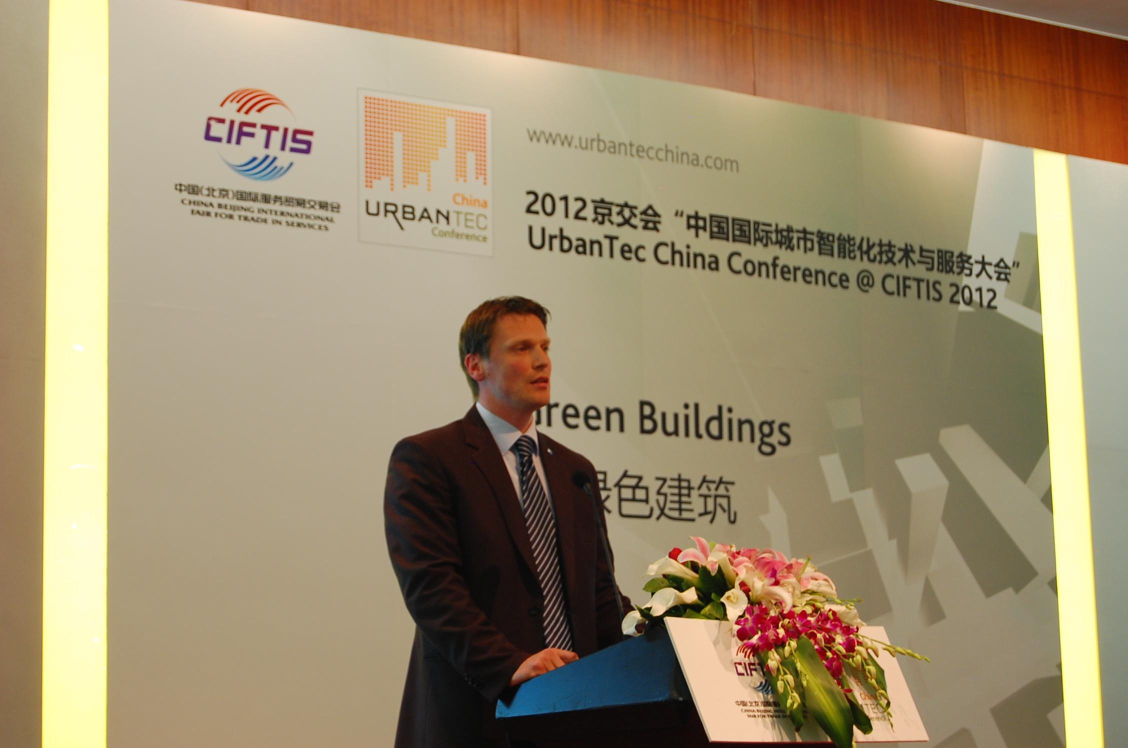 北京2012年5月31日電 /美通社亞洲/ -- 2012 年5月30日-31日,TUV 南德意志 (以下簡稱 TUV SUD)大中華集團參加了在北京國家會議中心由中華人民共和國商務部主辦,北京市人民政府承辦的2012京交會《中國國際城市智能化技術與服務大會》活動。期間,TUV SUD 嵌入式系統負責人 Kai StrUbbe 博士和 TUV SUD 大中華集團副總裁沃爾夫岡.徐貝爾(Wolfgang HUbl)先生分別就綠色城市、綠色建筑以及智能電網,與到場專家們一起分享了 TUV SUD 近年來在相關領域方面的較新技術應用與服務。