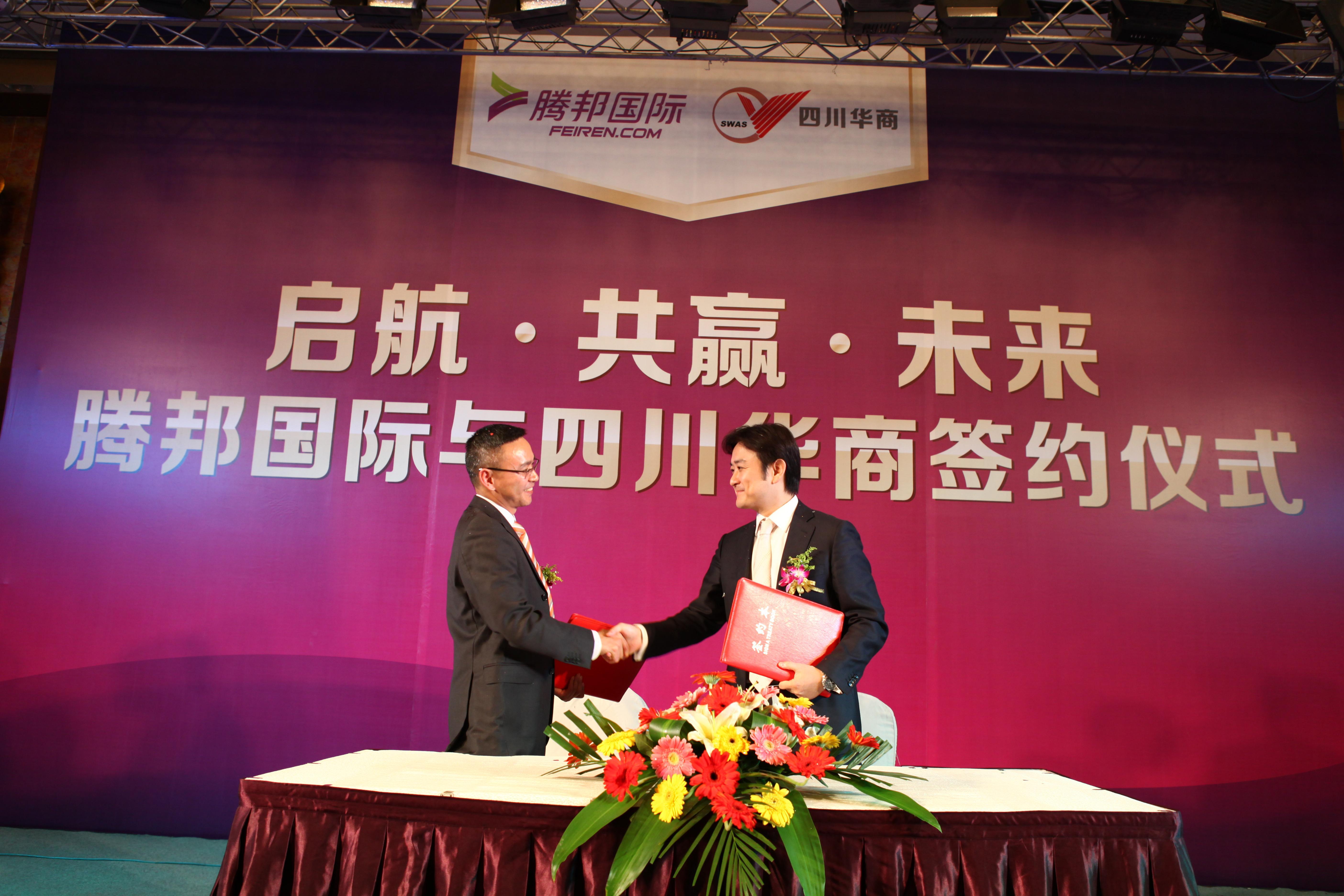 2012年10月11日,國內領先的在線旅行服務商騰邦國際與西南區較大的國際機票代理商四川華商,在成都舉辦合作簽約儀式。這場名為“啟航、共贏、未來”的簽約儀式,標志著騰邦國際這家國內領先的在線旅游服務商正式進入西南區商旅市場。
