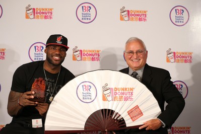上海2012年10月15日電 /美通社/ -- 擁有兩大全球知名品牌 -- 唐恩都樂(Dunkin’ Donuts)及芭斯羅繽(Baskin-Robbins)的Dunkin品牌公司(Dunkin’ Brands Group, Inc.,納斯達克上市:DNKN),今天在上海舉行NBA籃球巨星勒布朗·詹姆斯貴賓見面會,強調公司對進一步開拓中國市場的堅定信心。見面會上,“小皇帝”勒布朗大顯身手,與25位來自上海當地的球迷共同參與了趣味無窮的投籃游戲?;顒由?,這些幸運球友還與勒布朗進行了近距離的現場問答互動并一一合影留念。而唐恩都樂和芭斯羅繽也為現場來賓提供了多款優質美味的產品。Dunkin品牌公司全球首席營銷官John Costello先生出席活動并為來賓致以熱烈的歡迎。