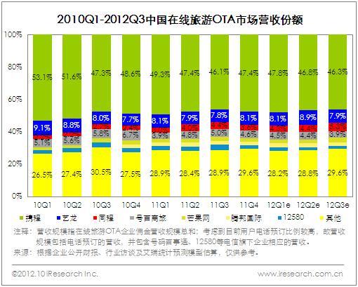 深圳2012年11月22日電 /美通社/ -- 11月初,艾瑞第三季度中國在線旅游行業分析報告出爐,據統計數據顯示,中國在線旅游市場交易規模達488.1億元,同比增長27.8%,同時,在線旅游OTA市場營收規模達26.3%,同比增長16.7%。在中國在線旅游OTA市場營收份額榜單中,騰邦國際首次名列其中,繼攜程、藝龍、芒果等位列第六。