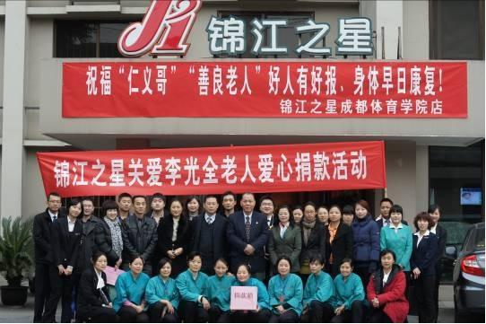 2012年11月23日下午,錦江之星的相關(guān)領(lǐng)導(dǎo)趕到四川省省醫(yī)院李光全老人的病房里,親手將愛心捐款交到仁義哥王東的手中,并鼓勵(lì)他生活要堅(jiān)定和樂觀。