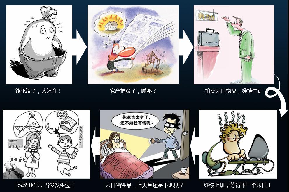 說到逃生還得感謝電影《2012》,《2012》不僅向我們展示了2012世界如何毀滅了,更是促使一本每人必備的世界末日逃生指南出爐。學(xué)會開車、學(xué)多種語言、購置一部好手機(jī)、提高知名度……如果沒有,那就“認(rèn)識一個全國數(shù)一數(shù)二的富豪,成為他們的丈夫或妻子,較好的朋友,甚至成為他們。”