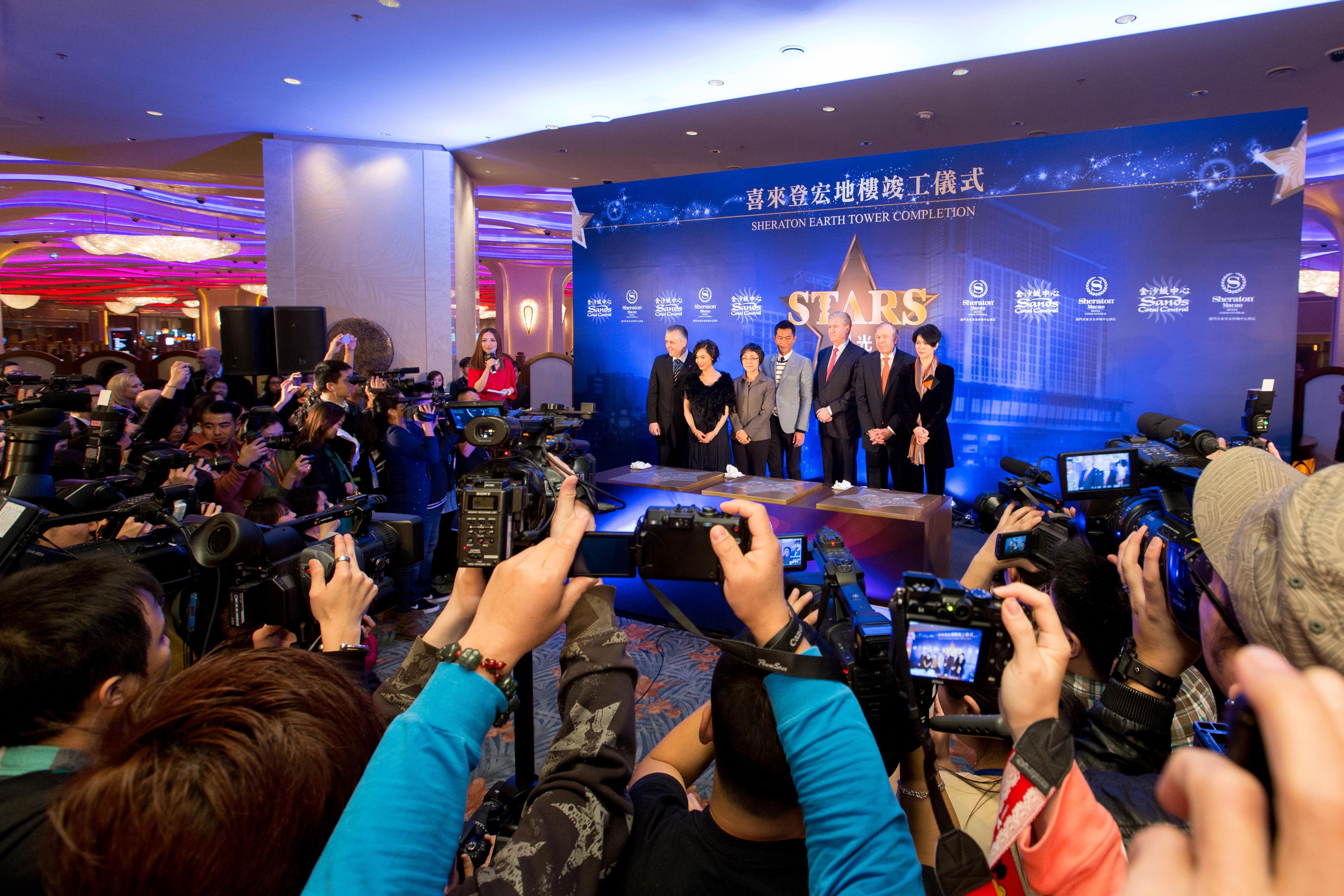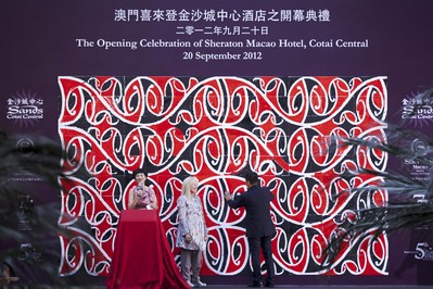 香港紅星古天樂、袁詠儀及朱茵,連同澳門特別行政區(qū)政府旅游局局長文綺華女士、卓思先生、金沙中國有限公司行政副總裁兼營運總裁大衛(wèi)-西斯克先生及道普先生主持了于星期一下午舉行的慶祝典禮。三位影視紅星隨后出席了另一項活動,為金沙城中心的“星光大道”進行打手印及簽名儀式。
