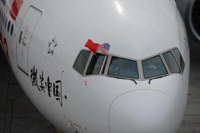 北京2013年4月2日電 /美通社/ -- 2013年3月31日上午10:40分,中國國際航空股份有限公司(以下簡稱“國航”)一架滿載“笑臉”的彩繪飛機在紐約肯尼迪國際機場“輕吻”跑道。它是波音777-300ER機隊中的B-2035飛機 -- “微笑中國”號,滿載著笑容與誠意,承載著國航人求新求變、優化服務的決心,拉開了國航北京-紐約航線升級的序幕。