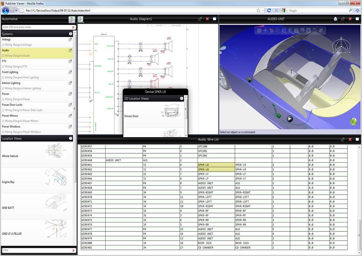 然而,在文檔制作和故障排除過程中,自動重復使用這類設計(或制造)數據需要運用少量技術。重要就是,要采用可收集所有需要數據的一種模式,可以捕捉到全方位設計數據。完善的數據模型可以自動執行很多有用的操作,例如自動生成設備清單和布線表等輔助性文件。此外,利用數據模型還可以自動重新分區,可能不再需要使用復雜的離頁交叉引用。再比如鄰域數據的后臺鏈接:對象匹配技術可以利用相關信息,創建診斷程序、3D 模型、位置圖、保險絲盒圖的鏈接等。從以上三個例子可以看出,不僅創建文檔所需的時間大大縮短,通過較大限度地減少人為干預也提高了質量。