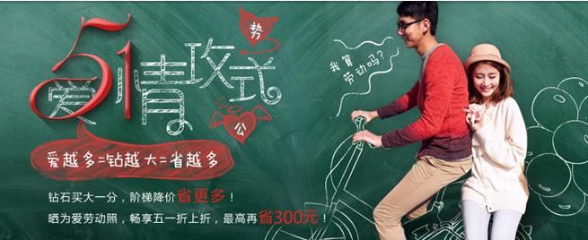 五月是愛情收獲的季節,鉆石小鳥精彩紛呈的活動現已上線為消費者在網購之余平添了不少樂趣。主打的“為愛加分”活動,簡單的計算公式,輕輕按動鍵盤,有多愛對方就為這顆象征著愛情的鉆戒多添一分,選越大的鉆石,優惠也會隨之攀升。