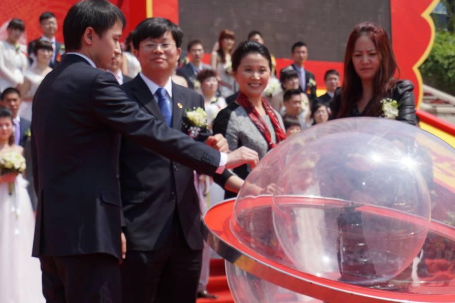 北京和天津5月8日電 /美通社/ -- 2013年5月1日,由中共塘沽工委、塘沽管委會和濱海新區(qū)民政局共同主辦的2013濱海青年集體婚典于塘沽市民廣場盛大開展,天津市團市委劉書記、情感專家黃菡教授以及珍愛網高層代表均出席了本次活動。此次集體婚典共邀請了包括新人、家屬和優(yōu)秀青年代表等五百多人參加,40對由國內較大婚戀網站珍愛網推選出的新婚男女在集體婚禮中經歷了一次神圣浪漫的洗禮。珍愛網此次聯手塘沽政府,向廣大適婚青年表達關愛,借集體婚禮的形式傳達積極向上的婚姻觀和生活觀。
