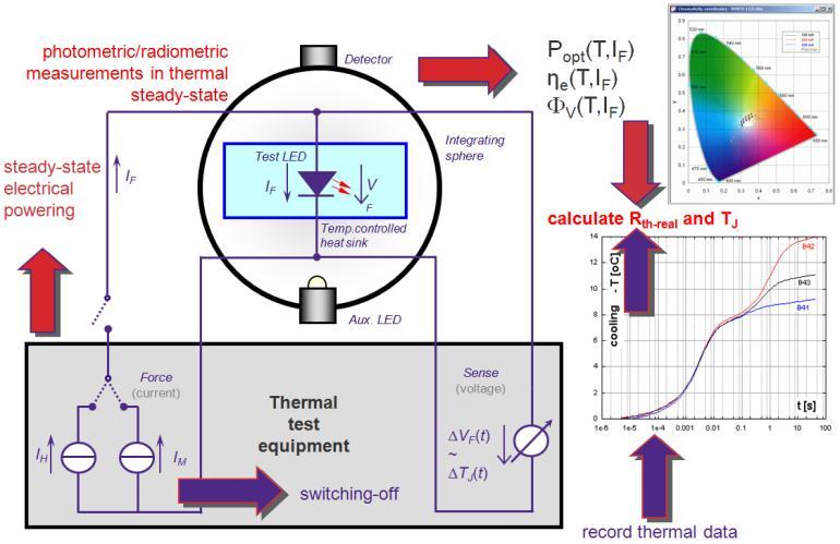 熱分析對于了解發光二級管的缺陷至關重要,可用來獲得熱阻信息以及測試合適的粘結劑或熱界面材料來確保裝配后的較佳熱管理能力。但用來給發光二級管供電的總電力被轉化為熱和光。因此,如圖4所示,為了正確進行熱分析,發光二級管產生的光功率應從供給電力中減去,從而得出真正的內部熱阻(完全基于發光二級管的熱功率)。