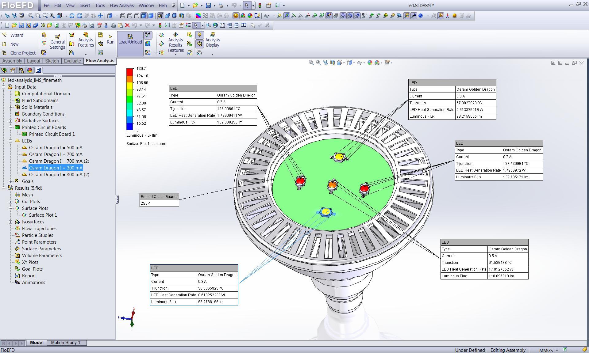 進行高度加速的壽命測試還能幫助你選擇在產品使用期內具有高可靠性的最合適的 LED。此外,熱仿真可確保熱管理系統在 LED 的整個生命周期提供適宜的環境,并且較大程度地降低對質量和性能的影響。 FloEFD 同步計算流體力學方法還通過在設計初期進行仿真加速了產品設計周期,縮短了產品面市時間并削減了開發與樣機設計成本。