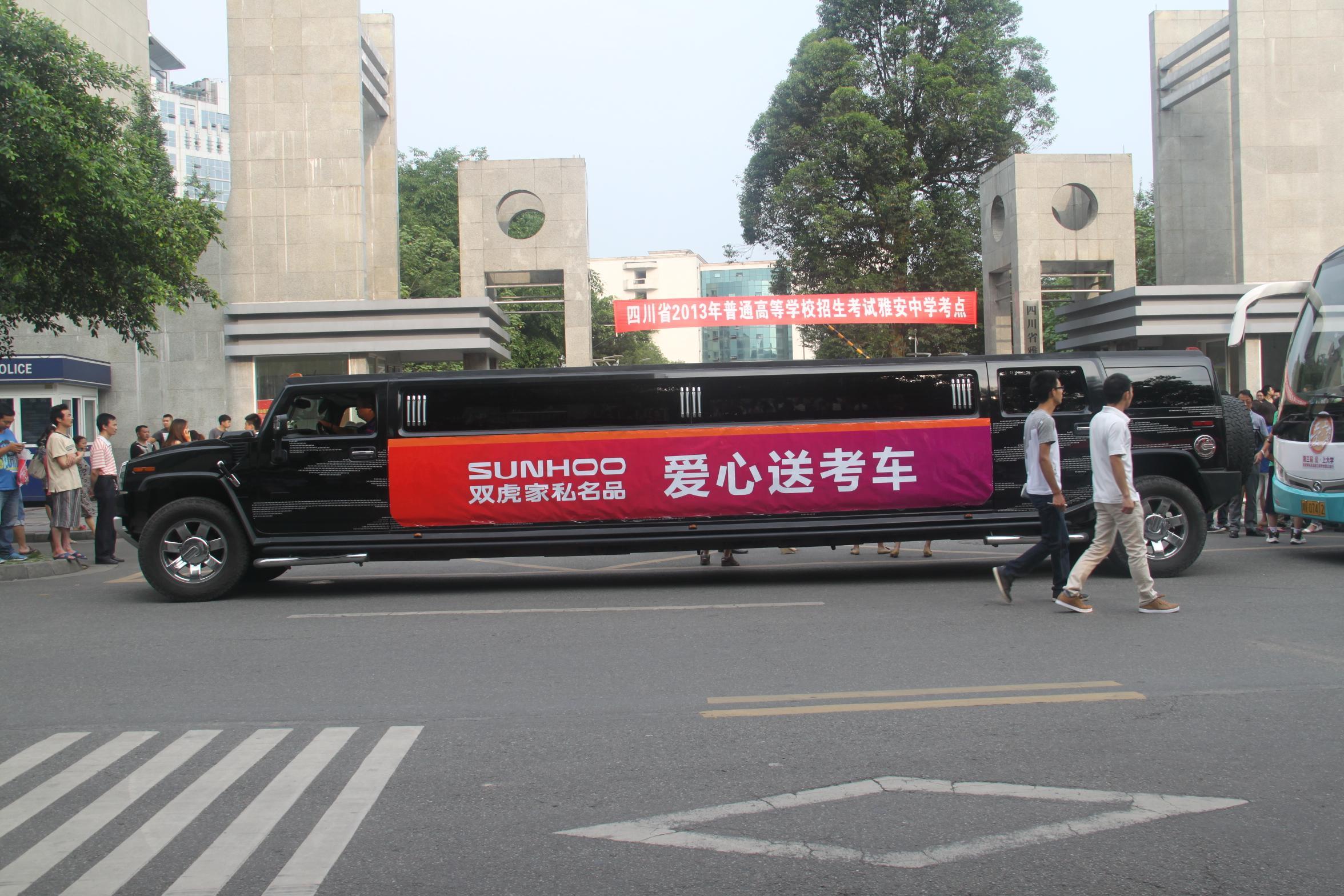 雅安的考生更是牽動著每一個人的心,本次雅安地區(qū)愛心送考,愛心送考車隊由加長悍馬、凱迪拉克、大巴車等近20輛車組成。為預(yù)防高考意外情況的發(fā)生,雙虎家私在考場外特設(shè)置了“愛心加油站”,為考生提供2B鉛筆、簽字筆、太陽傘、坐凳、礦泉水、防暑藥品等,更設(shè)有家長等待休息區(qū)。