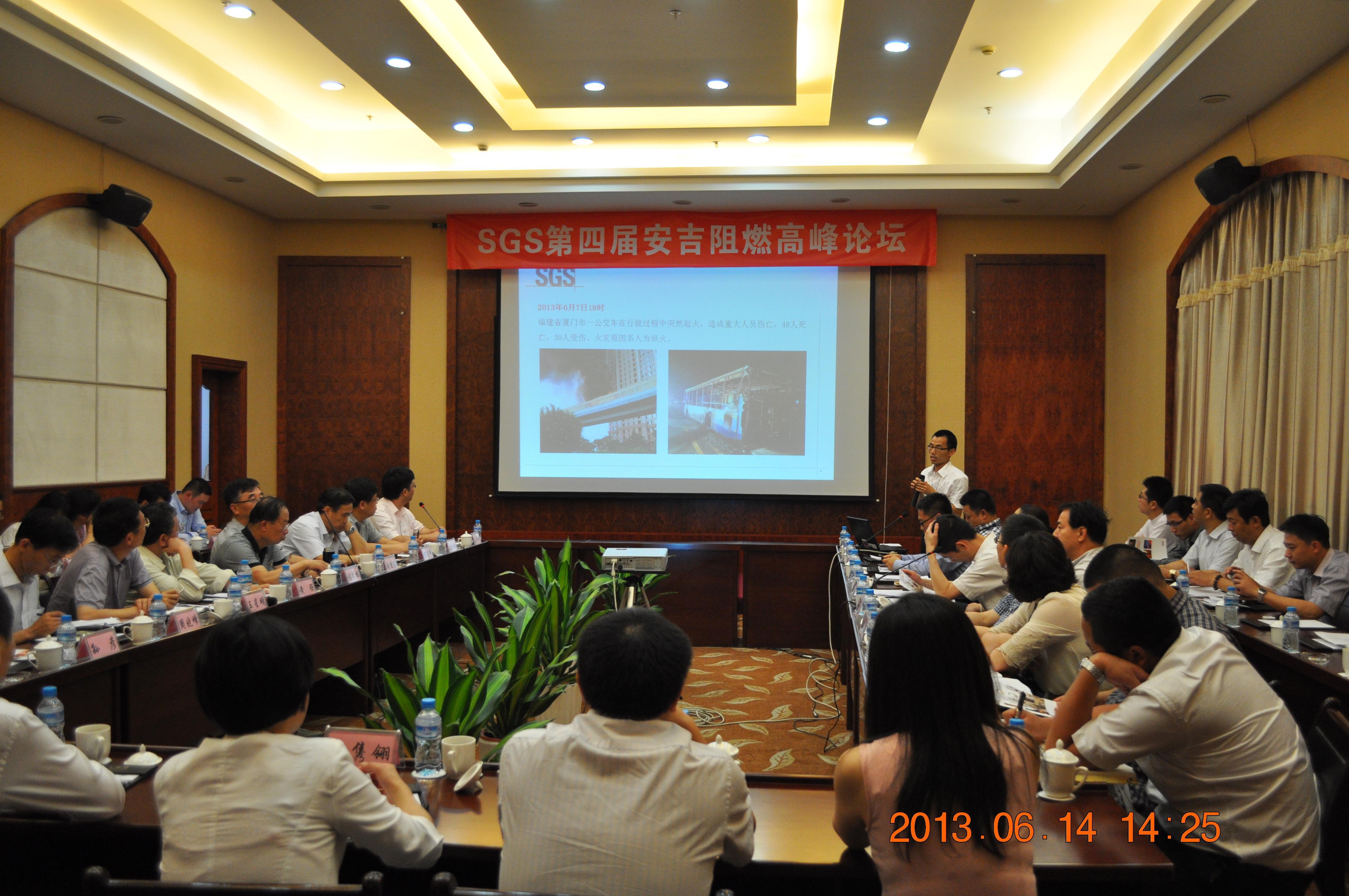 上海2013年6月24日電 /美通社/ -- 近日,第四屆阻燃高峰論壇在浙江安吉召開。此次活動(dòng)由全球領(lǐng)先的第三方檢驗(yàn)、鑒定、測(cè)試及認(rèn)證機(jī)構(gòu)SGS通標(biāo)標(biāo)準(zhǔn)技術(shù)服務(wù)有限公司(下簡(jiǎn)稱SGS)主辦,受邀出席的嘉賓有安吉縣副縣長(zhǎng)錢洪文、中國(guó)北車集團(tuán)副總工程師王星明、中國(guó)南車四方車輛廠質(zhì)量部副總工程師曹志偉、鐵路總公司首席專家(全國(guó)政協(xié)委員)黃強(qiáng)、中鐵學(xué)會(huì)秘書長(zhǎng)(原鐵道部貨車處處長(zhǎng))張進(jìn)德、鐵路總公司動(dòng)車聯(lián)合辦公室總驗(yàn)收室主任程學(xué)樞、鐵科院高級(jí)研究員周曉峰等防火阻燃界專家。此次活動(dòng)旨在通過對(duì)建筑及軌道交通阻燃安全最新法規(guī)的解讀,共同探討建筑及軌道交通火災(zāi)安全的解決之道,加強(qiáng)火災(zāi)風(fēng)險(xiǎn)評(píng)估及預(yù)防措施,從而降低火災(zāi)造成的損失。