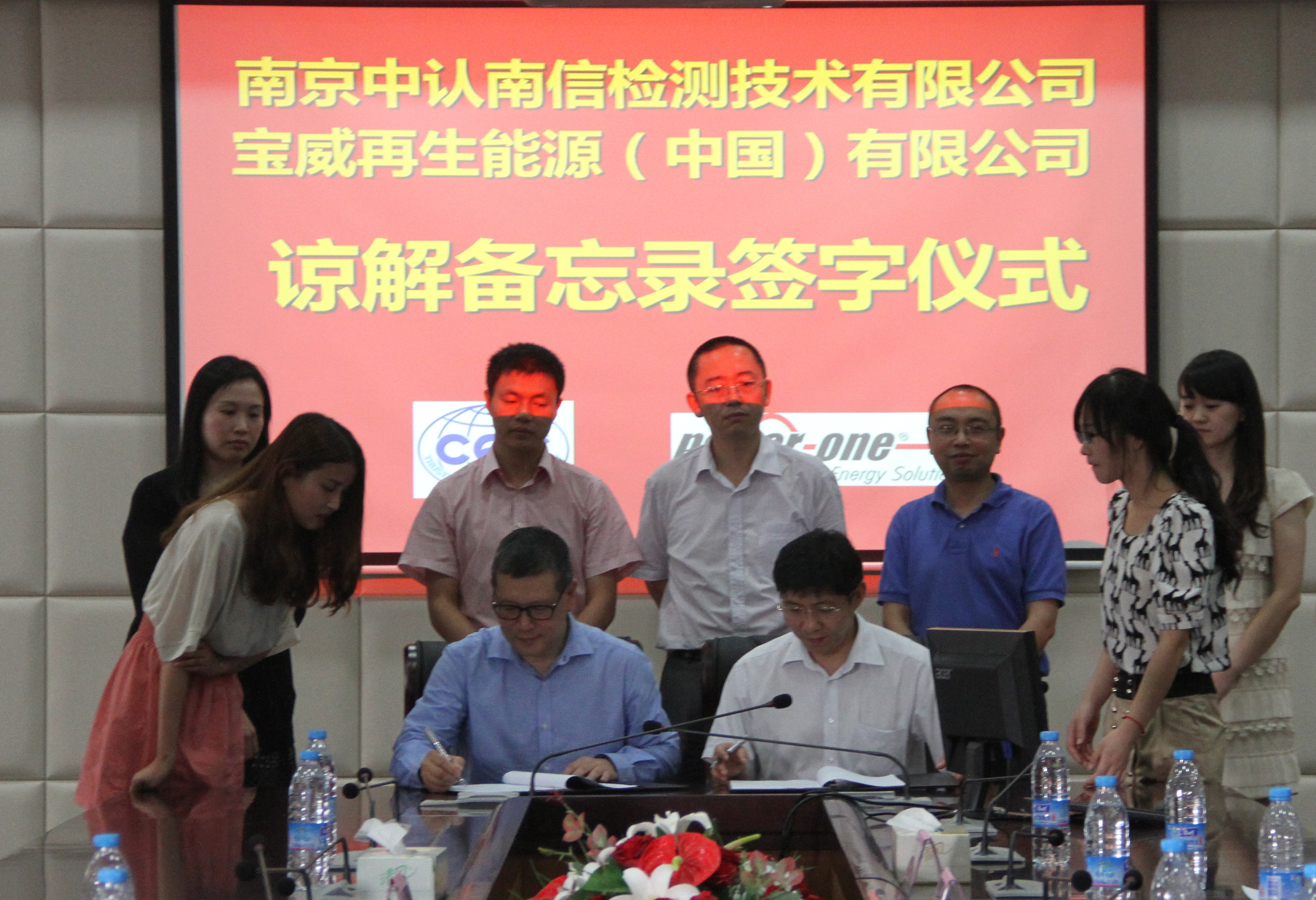 南京2013年7月10日電 /美通社/ -- 7月9日中國質(zhì)量認(rèn)證中心(CQC)所屬、中國新能源領(lǐng)域內(nèi)專業(yè)第三方技術(shù)服務(wù)機(jī)構(gòu) -- 中認(rèn)南信檢測技術(shù)有限公司(CQCTT)與全球較大的光伏逆變器生產(chǎn)商之一 -- 美國寶威再生能源(中國)有限公司(Power-One)在南京簽署合作諒解備忘錄,確立了雙方的戰(zhàn)略伙伴關(guān)系,并在此基礎(chǔ)上發(fā)展更加緊密的平等合作關(guān)系。