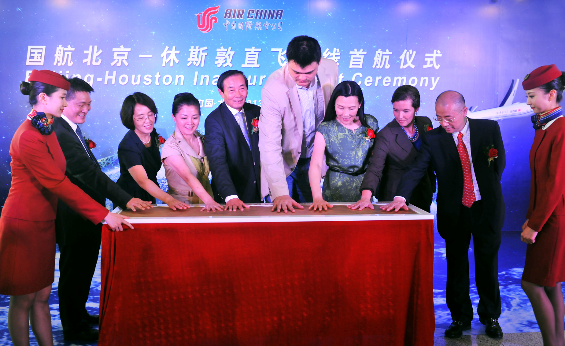 2013年7月11日13時,中國國際航空股份有限公司北京-休斯敦直飛航線首航儀式在首都機場3號航站樓舉行。前休斯敦火箭隊籃球巨星姚明應邀出席首航儀式。北京-休斯敦將成國航最長直達航線。