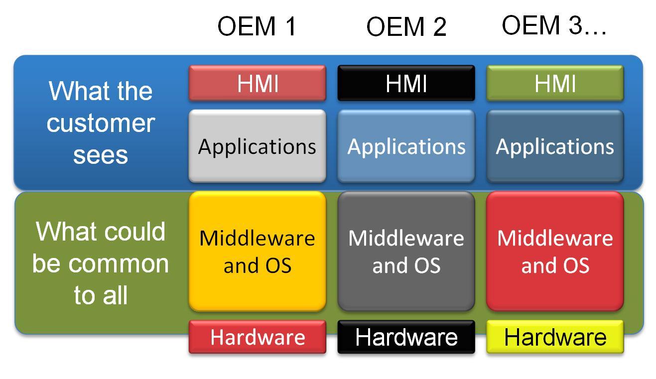 基于以上原因,非營(yíng)利 GENIVI 聯(lián)盟在四年前成立。GENIVI 聯(lián)盟的成員現(xiàn)在包括170多家汽車生產(chǎn)商和供應(yīng)商,其宗旨是共享一個(gè)標(biāo)準(zhǔn)的車載信息娛樂(lè)系統(tǒng)開(kāi)發(fā)的開(kāi)源平臺(tái)。