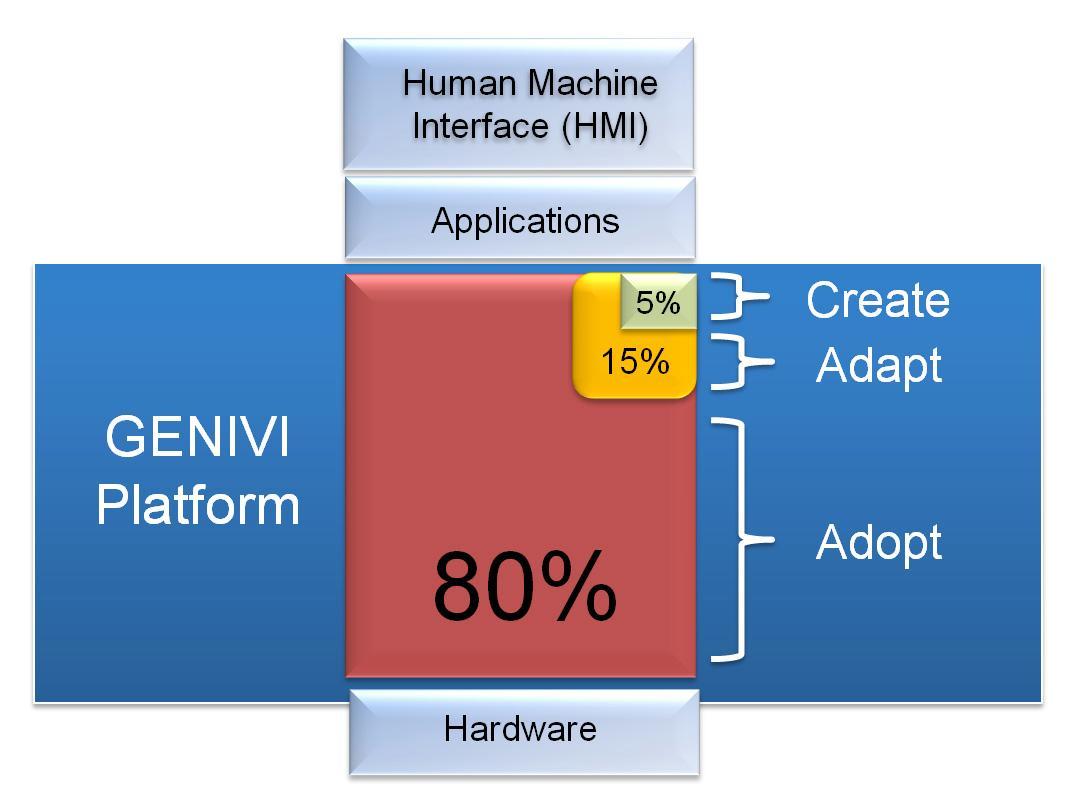 GENIVI 規(guī)范剩余5%的代碼對(duì)于車載信息娛樂(lè)系統(tǒng)而言非常獨(dú)特,現(xiàn)在還沒(méi)有這樣的開(kāi)源項(xiàng)目存在。