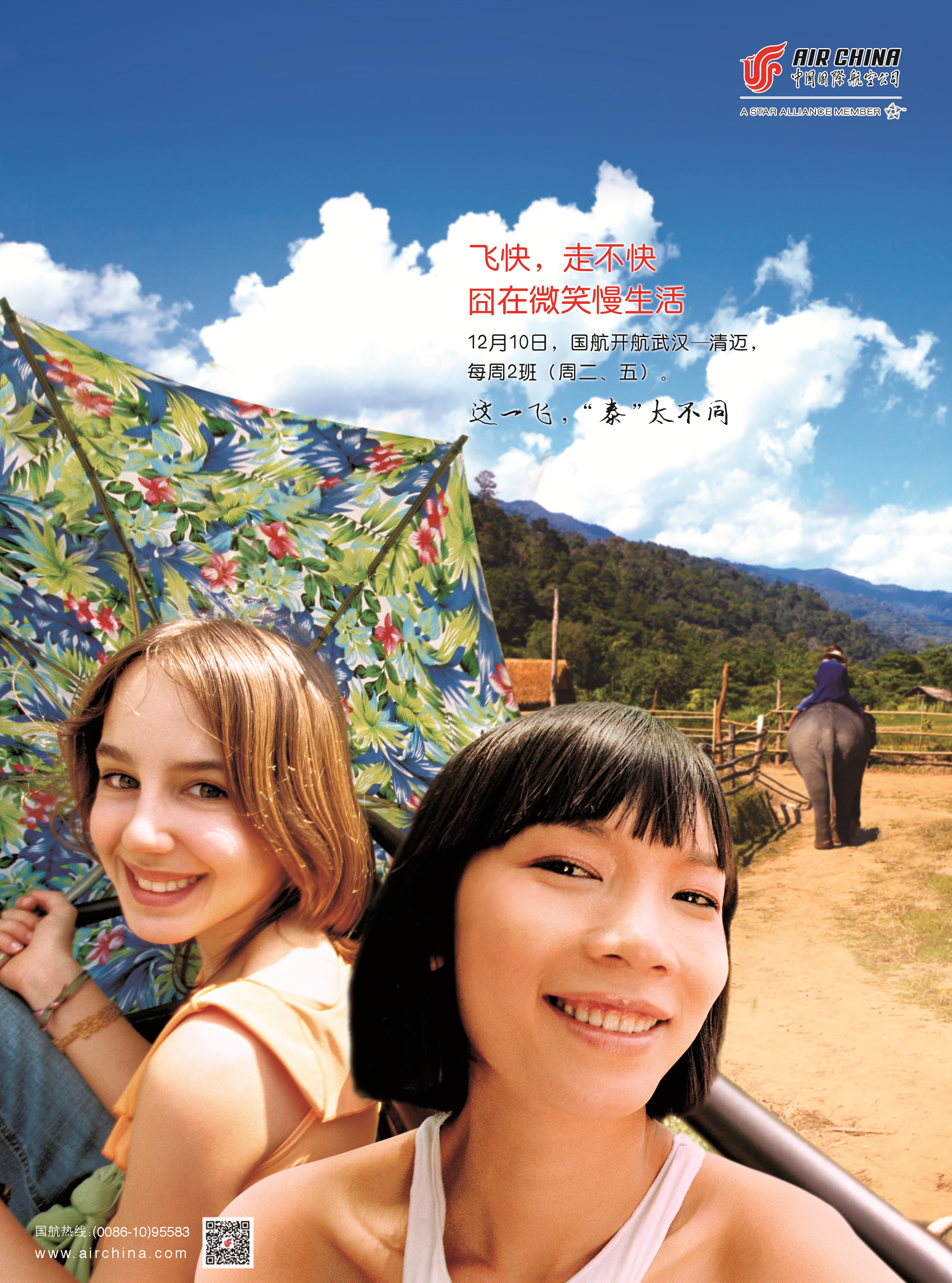 北京2013年12月3日電 /美通社/ -- 中國國際航空股份有限公司(以下簡稱“國航”)12月10日將新開武漢-清邁航線,航班號為CA705/6,每周2班,班期為周二、五。想去欣賞2013年票房奇跡《泰囧》中的街巷美景嗎?國航帶你從武漢始發,從容體驗!