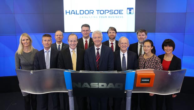 在股票交易所大樓內,托普索公司首席執行官Bjerne S. Clausen、首席財務官Peter Ronnest Andersen、董事會主席Henrik Topsoe和托普索家族其他成員一起走上臺。當時鐘指向9:30,Bjerne敲響了開市鐘。儀式通過CNN、CNBC和??怂剐侣勵l道進行了現場直播。